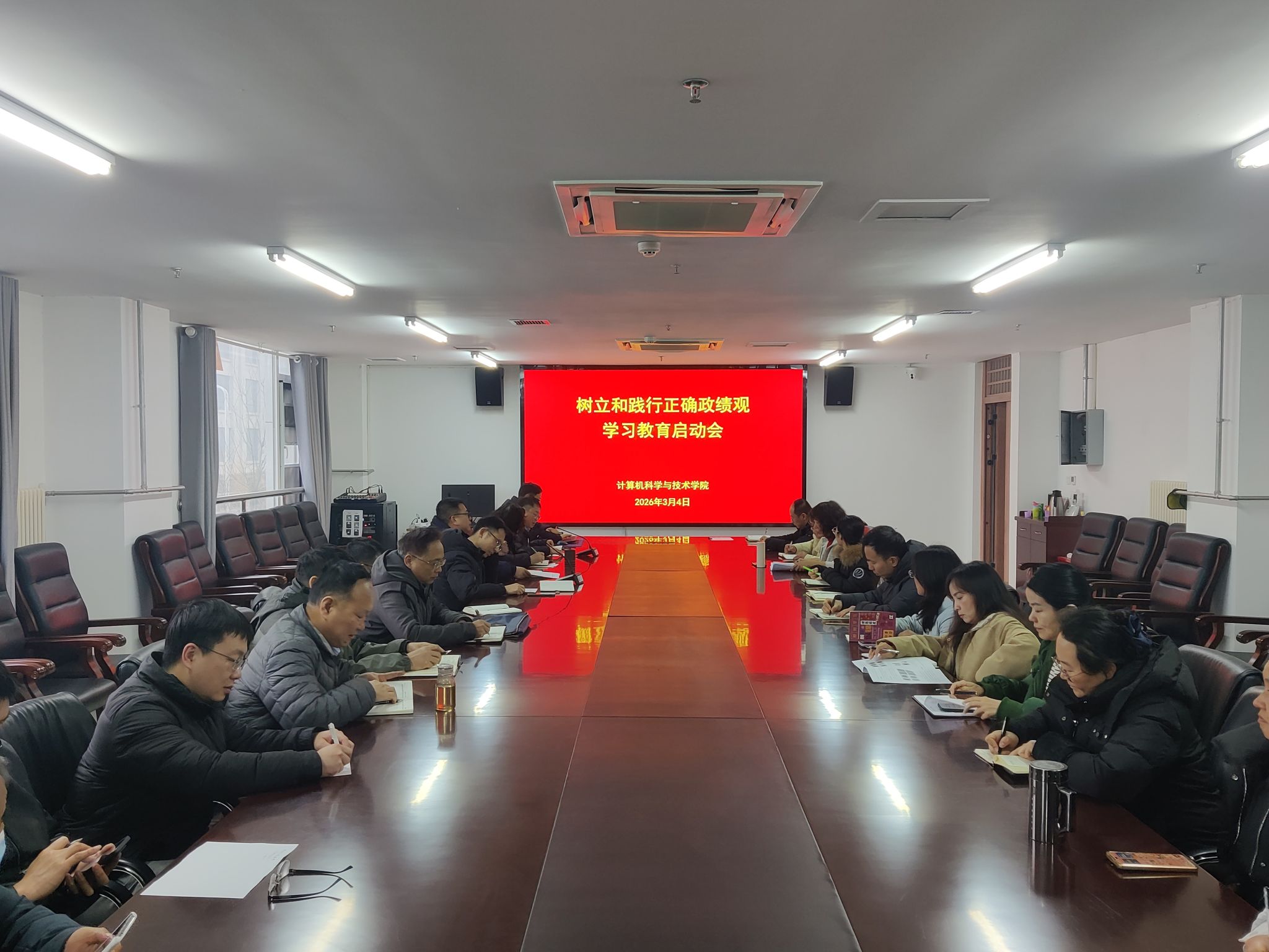3月4日下午,PG电子游戏平台(中国)官方网站 在弘德楼A213会议室动员部署树立和践行正确政绩观学习教育。全院教工党员参加会议,会议由党委副书记、院长高国红主持。